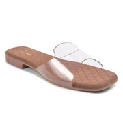 Padchin Women's Transparent Square Toe Flats | Stylish Slip-On Platform Slippers