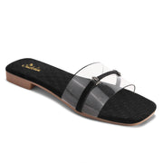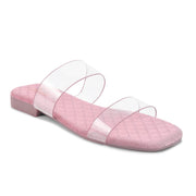 Padchin Women's Transparent Square Toe Flats | Soft Stylish Double Strap Slip-On Sandals