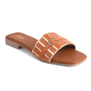 Padchin Women's Checked Design Square Toe Flats | Soft Stylish Slip-On Sandals
