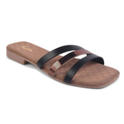 Padchin Women's Multi Strap Square Toe Flats | Soft Stylish Slip-On Sandals